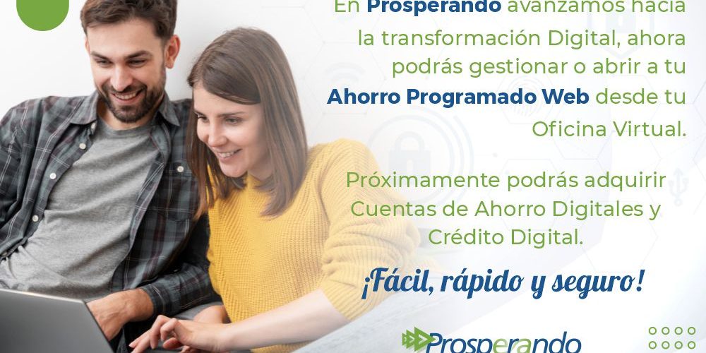 COLOMBIA (Mayo 3 de 2021). Prosperando, la Cooperativa de Ahorro y Crédito Social Tolimense, la cual contribuye en el desarrollo regional, principalmente en Tolima, Bogotá, Girardot y Costa Caribe, avanza en el mundo digital y lanza su portafolio de productos financieros digitales como Ahorro Programado Web, donde próximamente los asociados también podrán adquirir cuentas de ahorro y crédito digital.