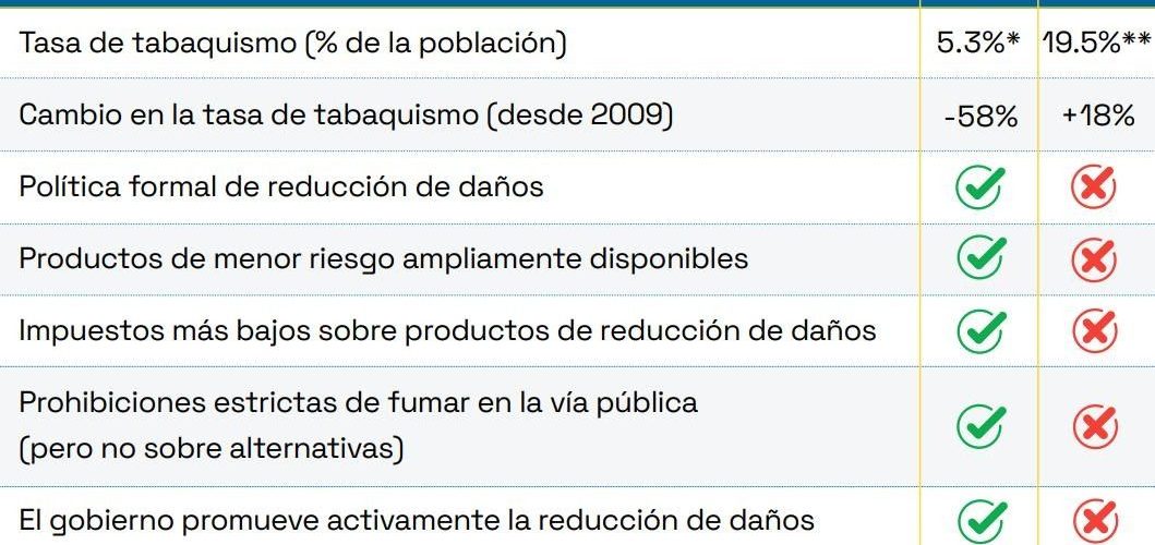 El éxito de Suecia se debe a que las alternativas más seguras, como el snus, las bolsas de nicotina y los vapeadores, son accesibles y asequibles para los fumadores adultos. Entre las medidas clave figuran el acceso legal a estos productos en el mercado, impuestos proporcionales que favorecen a los productos menos nocivos y políticas basadas en pruebas que reconocen la enorme diferencia de daños entre los cigarros combustibles y los productos alternativos sin humo.